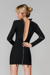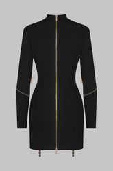 The dress is embellished at the neckline and elbows with openable gold-tone metal zips and a two-way zip fastening at the back to ensure a perfect fit and elegantly emphasise your curves. The high neck and straight sleeves give this dress a sophisticated look.