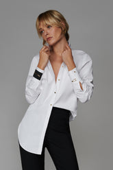 The long shirt is made from white cotton poplin of incomparable quality.