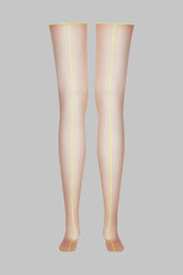 Maison Close's signature cut and curled stockings. Nude colour with neon yellow seams at the back.