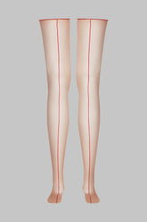 Maison Close's signature cut and curled stockings. Nude colour with red seams at the back.