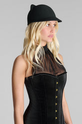 The Cat Hat is a piece as playful as it is refined. With its short visor and two feline ears, it evokes a barely whispered secret, a duality between innocence and daring. Crafted entirely from black wool, it conceals inside a violet grosgrain ribbon, Maison Close’s signature color, for a discreet yet assertive touch.