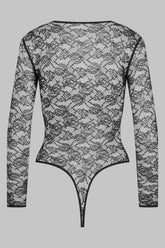 This V-neck thong bodysuit features mostly recycled openwork lace. With its flat elasticated trim, the high-leg design emphasises the hips for an '80s style.
