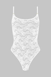 This thong bodysuit with straps features mostly recycled openwork lace. With its flat elasticated trim, the high-leg design emphasises the hips for an '80s style. Adjustable hook-and-eye fastening at the crotch. Removable, adjustable Signature straps with gold trim – interchangeable with the other Signature straps available in a range of colours. An opportunity for each Muse to create their own unique mix and match.
