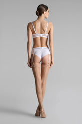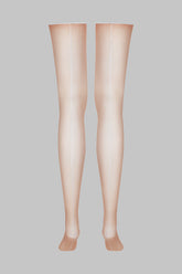 Maison Close's signature cut and curled stockings. Nude with white seams that match ACCROCHE CŒUR collection.