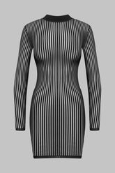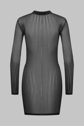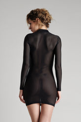 Microfibre short dress with openwork, transparency and graphic stripes. Fitted cut that sculpts the silhouette, long sleeves and plain microfibre stand-up collar.