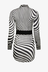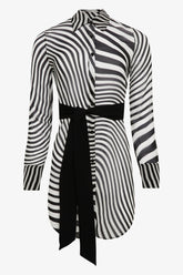 The black Fever shirt dress is crafted from fluid, semi-sheer viscose crepe, offering an airy and refined silhouette. Its straight cut features a shirttail hem, slightly shorter at the sides, subtly revealing the leg and gracefully elongating the figure. It fastens at the front with contrasting black buttons engraved with the Maison Close signature, echoing the wide buttoned cuffs and classic shirt collar. A removable black belt allows the waist to be cinched or left free, depending on your mood.