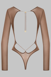 French Kiss Light Open Back Long Sleeve Thong Bodysuit