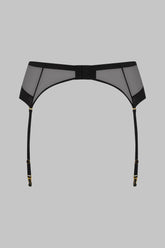 This black colour suspender belt features soft mesh with a sheer iridescent appearance. Clip fastening on the back.