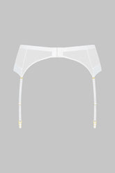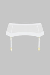 This white colour suspender belt features soft mesh with a sheer iridescent appearance. Clip fastening on the back.