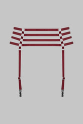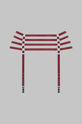 Suspenders by Maison Close Clusters of fine silver rings and elasticated burgundy ribbons create a jewellery-accented accessory to subtly accentuate your nudity. Four adjustable, removable suspender straps call for stockings to enhance your look or transform this suspender belt into a stylish belt. Adjustable to suit all body shapes.