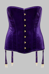 ROCOCO garter corset in velvet, inspired by traditional corsetry, designed to sculpt the waist and define the silhouette. Flexible steel boning and a firm inner lining shape a structured fit that creates a controlled push-up effect while ensuring comfortable wear.