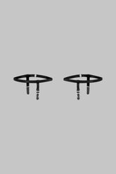 Two Signature garters stamped with the Maison Close logo. Adjustable elasticated bands with silver accents. Movable mini suspender straps for positioning on either side of the leg once the garter is adjusted.