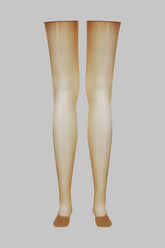 Maison Close’s signature rolled-edge stockings. The caramel shade elegantly highlights the legs for a unique style. The silky 20-denier voile stands out with its exceptional sheen, to be paired with a garter belt for a perfect fit.
