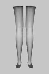 Maison Close’s signature rolled-edge stockings. The smoky grey shade elegantly highlights the legs for a unique style. The silky 20-denier voile stands out with its exceptional sheen, to be paired with a garter belt for a perfect fit.