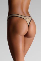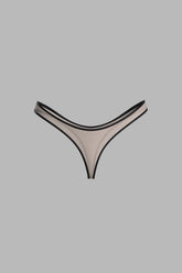 High-cut thong in ultra-fine microfiber with a second-skin effect. The cut rises higher on the sides to reveal the hips and elongate the leg. Edges are finished with contrasting ultra-flat elastic. At the back, the Maison Close signature gracefully enhances the silhouette.
