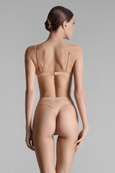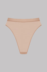 This nude colour high-rise thong features soft mesh with a sheer iridescent appearance.