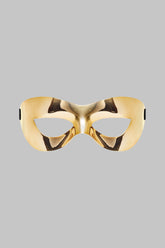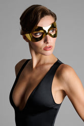 Its exclusive rigid mold, covered with a luxurious gold plating both inside and out, gently embraces the contours of the face for a perfect fit. Designed to suit all face shapes, this unisex one-size model is adjustable thanks to its black elastic strap.