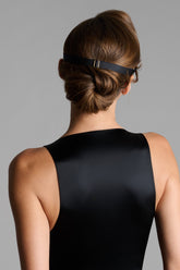Its exclusive rigid mold, wrapped in a sumptuous silver plating both inside and out, gently embraces the contours of the face for a flawless fit. Designed to suit all face shapes, this unisex one-size model is adjustable thanks to its black elastic strap.