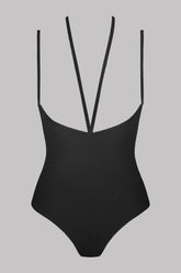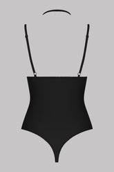 Opaque microfibre peephole thong bodysuit with elasticated picot trim. Fitted design structured with two crossover pieces and a crotch opening. Graphic under-bust shape with elasticated picot harness. Straps can be adjusted with tone-on-tone accessories. The perfect gift to slip in their bag for a weekend away.