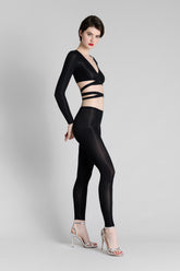 Long, minimalist leggings with a unique feel. Stretchy, ultra-soft, lightweight ribbed modal that stretches and has a sheer, shiny sheen. Elasticated tunnel waistband. Figure-hugging design.