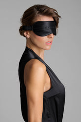 Fully opaque to stimulate the rest of your senses. An elasticated strap covered in gathered silk holds it on securely. A one-size-fits-all accessory that adapts gracefully to all faces.