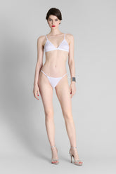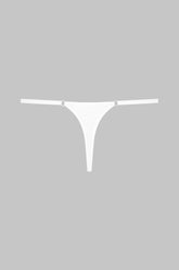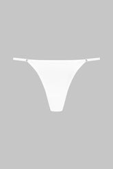Minimalist mini thong with a unique feel. Stretchy, ultra-soft, lightweight ribbed modal that stretches and has a sheer, shiny sheen. Featuring 2 modal-covered non-removable elasticated straps with adjustable silver trim. Cotton-lined crotch.