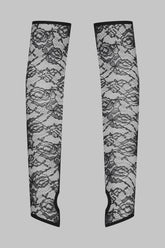 These opera mittens are embellished with mostly recycled openwork lace. Fitted style with flat elasticated trim. Bias cut at the top of the hands for an '80s style.