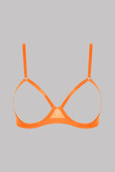 With its underwiring and neon tulle, the cupless bra is the collection's cheekiest style.