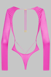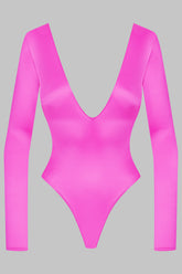 Long-sleeved high-cut thong body, combining satin softness and unique style.