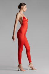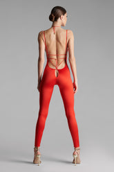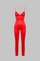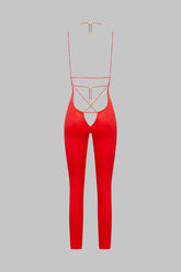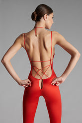 Open-back catsuit combining satin softness and unique style. The triangle cups are elegantly structured. The thin, flat, adjustable straps ensure a perfect fit. A surprising set of adjustable lacing thanks to unique adjusters and golden lipstick accessories by Maison Close, sublimates your back. An open back designed to elegantly reveal a pretty heart buttocks. The high-cut thong yoke at the front elongates the silhouette.