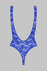 The neon-colored thong bodysuit is adorned with mostly recycled openwork lace. Wide straps reveal a low-cut back edged with a flat elastic. Slim fit edged with a flat elastic. Its cleavage, its low-cut armhole and its vertiginous bare back take us back to the 80s.
