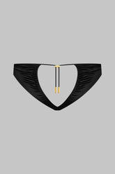 Open briefs, combining satin softness and style. Designed to elegantly reveal a pretty heart buttocks. The opening, adorned with pleated lacing, perfectly shapes the buttocks and allows a personalized fit thanks to a unique adjuster and gold lipstick accessories signed Maison Close.