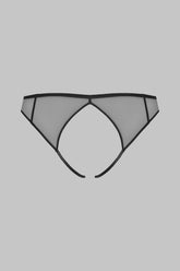 The L’AMOUREUSE open briefs, in tulle of absolute transparency, stand out with transverse seams that shape a heart-opening detail at the back.