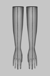 The L’AMOUREUSE opera gloves, in tulle of absolute transparency, feature seamwork that structures the hands and forearms with style. Worn with ready-to-wear, a dress or a jacket, they complete a look from day to night.