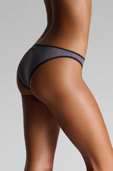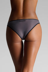 Panty in ultra-fine microfiber with a second-skin effect. The smooth, lightweight fabric is almost imperceptible, offering discreet fluidity. The edges are trimmed with contrasting ultra-flat elastic that outlines the silhouette without constraint. At the back, the Maison Close logo in relief signs the piece with a graphic touch.