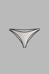Panty in ultra-fine microfiber with a second-skin effect. The smooth, lightweight fabric is almost imperceptible, offering discreet fluidity. The edges are trimmed with contrasting ultra-flat elastic that outlines the silhouette without constraint. At the back, the Maison Close logo in relief signs the piece with a graphic touch.