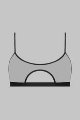 The bralette – Pure Tentation reimagines the concept of visual comfort. Its two-material construction blends sheer tulle brushing the bust with opaque microfiber panels that contour the silhouette. An oval cutout offers a delicate suggestion. Wireless yet shaped by bust darts, it provides light support, ideal for daily wear or layering. Thin adjustable straps ensure a perfect fit, and it fastens at the back with a hook-and-eye closure.