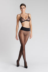 Like a second skin that's totally invisible under clothes, these seamless crotchless tights emphasise the silhouette with their subtle shine. A sculpting, ultra-comfortable waistband in Maison Close's signature tone-on-tone design shapes the waist. Without reinforcement on the feet, heeled sandals are an obvious choice. Ladderless design. Made in Italy in a workshop known for its excellence.