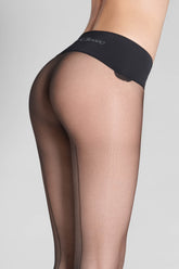 Like a second skin that's totally invisible under clothes, these seamless crotchless tights emphasise the silhouette with their subtle shine. The delicate seams elegantly accentuate the back of the legs. A sculpting, ultra-comfortable waistband in Maison Close's signature tone-on-tone design shapes the waist. Without reinforcement on the feet, heeled sandals are an obvious choice. Ladderless design. Made in Italy in a workshop known for its excellence.