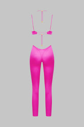 Jumpsuit with bralette neckline, combining satin softness and unique style. The seamless cups are elegantly structured with pleating at the neckline. Repositionable and adjustable thanks to a unique adjuster and gold lipstick accessories by Maison Close, the lacing around the neck enhances your décolleté while allowing you to personalise it as you wish. The flat and adjustable fine straps ensure a perfect fit. An elasticated band around the chest perfectly hugs and shapes the bust. Adjustable hook-and-eye fastening at the back.