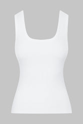 This white tank top stands out for its sleek, fitted style. It is made from organic ribbed cotton, combining softness, just the right thickness and incomparable quality.