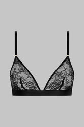This triangle bra without underwiring features mostly recycled openwork lace. Signature adjustable and removable straps with gold accessories. Swap whenever you like with any other Signature straps available in various colours. An opportunity for each Muse to create their own unique mix and match. Fastens at the back with a smooth, subtle adjustable clip.