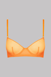 This wire bra with its neon colours features soft tulle with a sheer iridescent appearance. The wiring holds you in place perfectly. Fastens at the back with a comfortable clip.